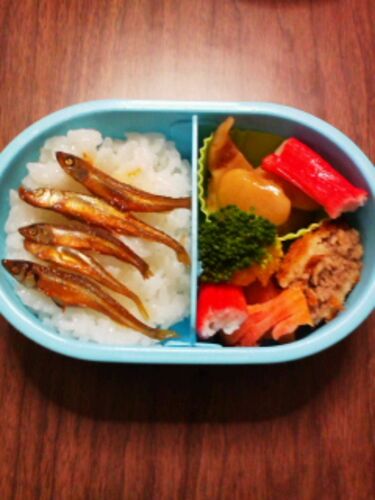 YUKIのお弁当にワカサギの佃煮をトッピング。 いつもはご飯にふりかけをかけていますが… 見事に完食してくれました。