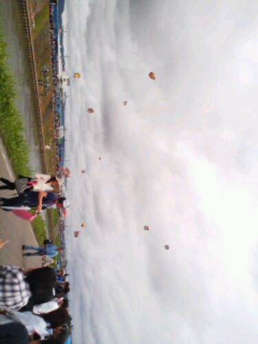 新潟市南区の大凧合戦を見に行きました。 土手で見ていたら、突然、凧を引くハッピ姿の人達が凄い勢いで走って来た。 YUKIは怖がってた。 企業の他に結婚祝いや入学祝いなどいろんな凧があった。 風が弱かったので、勢い良く揚がらなかったのが残念。