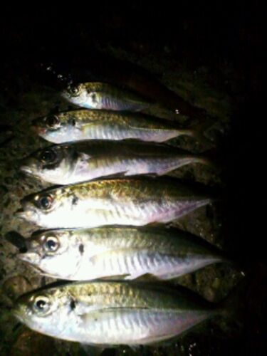昨夜とは変わって漁船がなく真っ暗。 雨が落ち着くのを待って20時スタート。 1投目、着水してフォール中にヒット。 26cmのいいアジ。 連発を期待したが、続かない。 その後は単発で深めばかり。 ドンコまで来たので、底をトレースできていたのは間違いない。