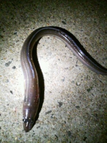 夕方、突然の土砂降り。 家事を済ませたら止んでいたので川へ。 海へ出る流れ。 エビ投入。 いいアタリをしたのはクサフグ。 フグ連発。 真っ暗になるとフグが落ち着いた。 かすかなアタリ。 細身のアナゴ。 引きずっていると、餌をくわえて手前にダッシュす…