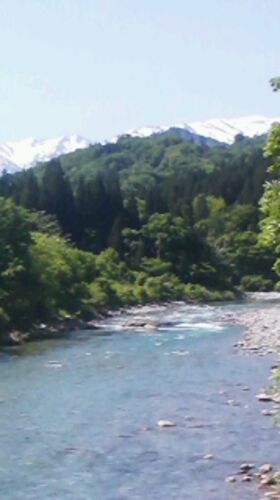 まだまだ残雪が多い飯豊山。 車が多いと思ったら、ワラビ園がたくさんあり、大盛況。 川は澄み切っていて、まさに水色。 魚は、残念ながら気配もない。 小さな枝沢の1ポイントで、やっとイワナに出会えた。 狭いながら、右から2連続ヒット。 左にキャスト…