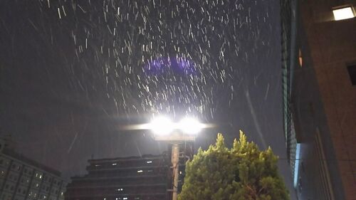 201812227 夜、雪が降り出した。 イルミネーションの光が寒そう。 明日は積もってるのかな?