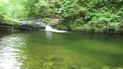 20190519 午前中は災難続き。 羽黒川で脱輪した方も災難だった。 電波の届く所まで乗せて、レッカーに連絡。 午後ゆっくり刈安川へ。 完全に人が入った後。 いいポイントはことごとく無反応。 淵尻からダッシュするイワナがいたので、居ない訳ではない。 警…
