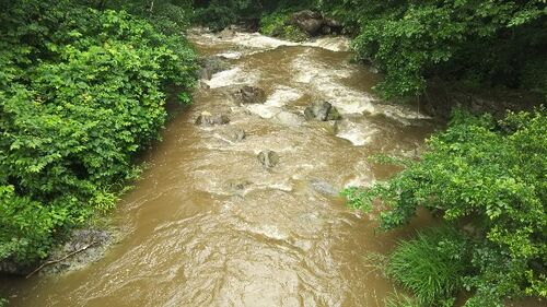 20190720 梅雨の天気が続いて、蒸し暑い。 西栗子トンネルが工事で大渋滞していたので、板谷方面に曲がり、羽黒川へ。 分水嶺では、風力発電の工事が大規模に始まっていた。 羽黒川に着いて川の様子を見ると... 強い濁り! 雨も強くなり、釣りは断念。 細い…