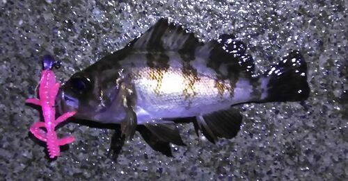 20191123相馬へ。 雨が17時頃弱くなってくれた。橋の下は下げ潮中。新港へ。水面にはまだ木くず、アマモが多い。重たいアタリでワームをかじられた。小さいアタリでやっと魚。 橋の下へ。 流れは弱くなったが、濁りが… 雨がまた降ってきたので、終了。
