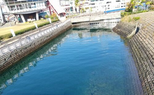 20231127 鹿児島の水族館へ 入口前の水路の透明度に驚いた! 遠景 展望室から桜島 ジンベイザメなど この画像の中に4尾の魚!水槽いっぱいにジャンプやはり淡水魚は癒される END