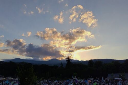 20250809 四季の里花火大会へ 熊に注意が必要なここの界隈 人の多さで驚いたか 次第にいい雰囲気に スタート! やはり近くから見ると迫力ある! 帰りに、月が明るく照らしてくれた